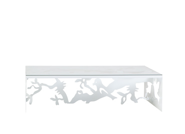 Robin Woods Low Tables. Made to Order. Laser cut metal with powder coated finish with glass top. Optional sizes and colours available. Range includes dining table, desk and u shape table....